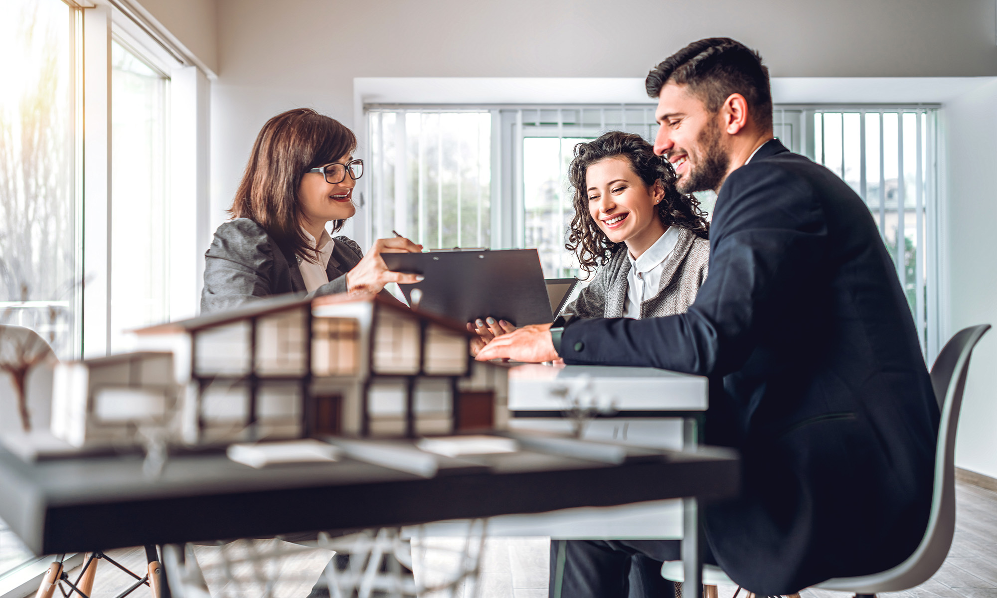Mortgage professional consulting with clients
